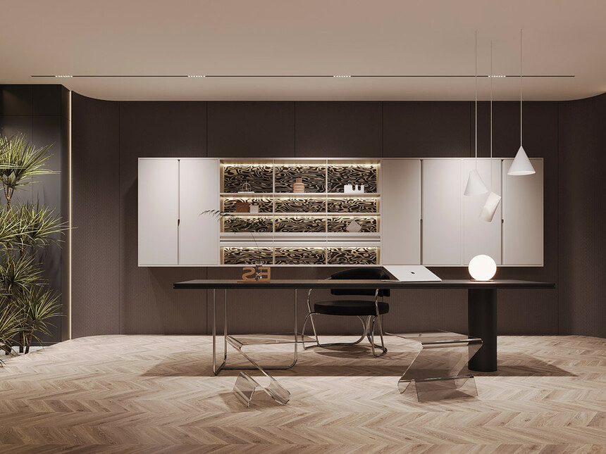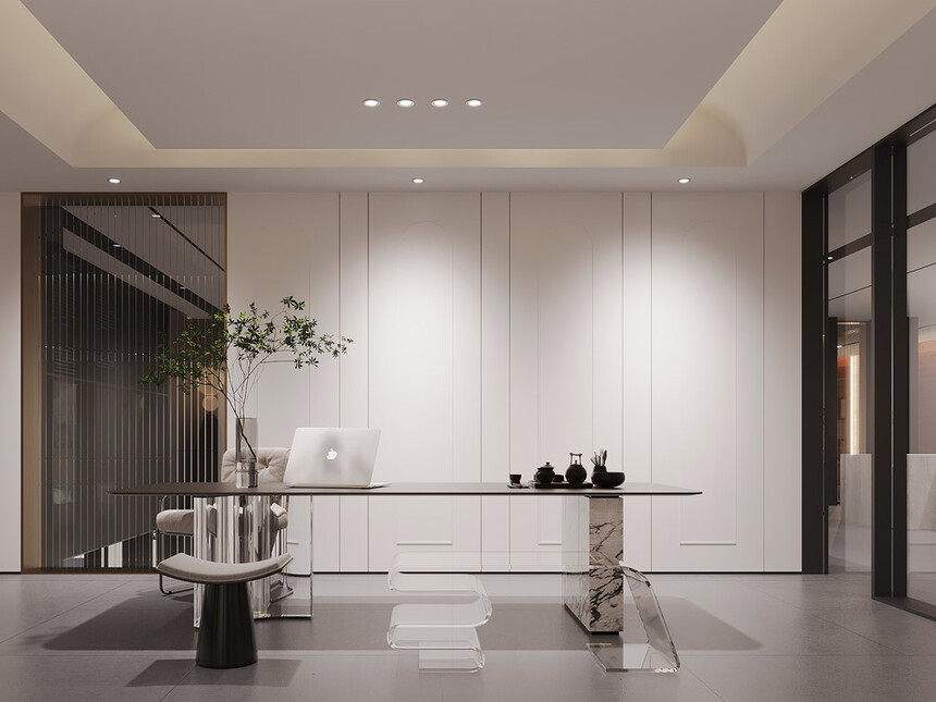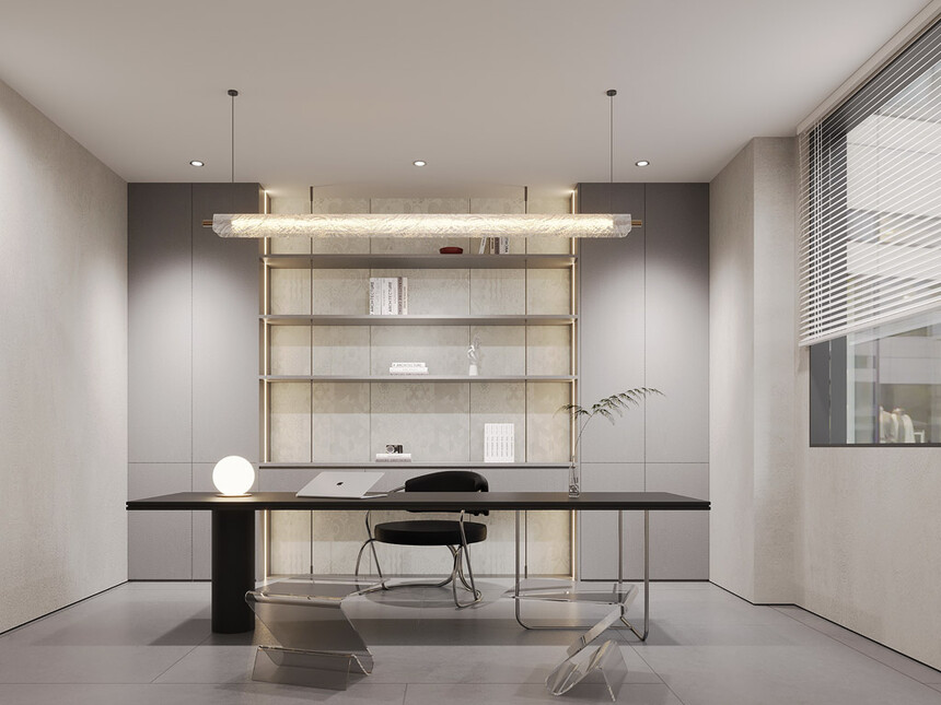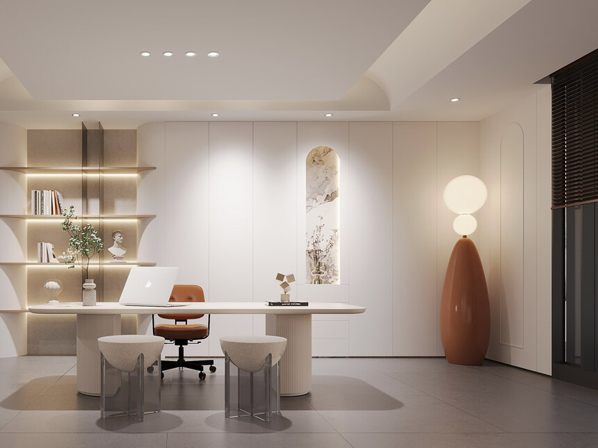 意式极简书房,是为思考量身打造的“精神角落”。整面定制的极简书架,隐藏式灯光勾勒出书籍的轮廓;一张利落的书桌搭配人体工学椅,拒绝多余设计,只保留“专注”所需的一切。在这里,思绪能轻易挣脱外界干扰,沉浸式享受与自我对话的时光。